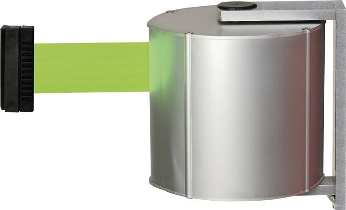 Kassette zum Anschrauben an Wänden, Regalen, etc., dadurch flexibel einsetzbar · Gehäuse aus Aluminium, auch für den Außeneinsatz geeignet · drehbare Kassette passt sich der Gehrichtung an, das vermindert Gurtverschleiß · mit integrierter Viskosebremse für eine kontrollierte Rückführung des Gurtbandes · H 215 x Ø 170 mm · Gurtlänge 10 m, bzw. 20 m