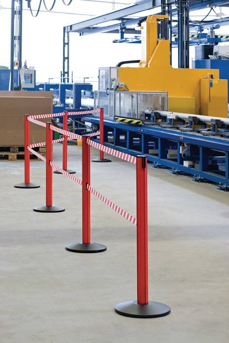 mit selbst aufrollendem Gurtband, dadurch effektive und schnelle Möglichkeit Gefahrenbereiche in Produktion oder im Lager abzusperren · Gurtpfosten Höhe 1000 mm, mit 4 Längsrillen im Aluminium-Rohr · 3 Gurtaufnahmen und ein Gurtauszug · mit selbstaufrollendem Gurt zum Einhängen in Pfosten oder Wandhalter (Zubehör) · Gurtband in den Ausführungen gelb/schwarz quergestreift (Pfosten = gelb) bzw. rot/weiß quergestreift (Pfosten = rot) erhältlich Weitere technische Eigenschaften: · Ø: 70mm · Höhe über Flur: 1000mm