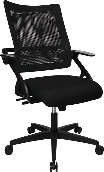mit Wipptechnik ? mit Armlehnen ? für überwiegend sitzende Tätigkeiten ? stabiles Kunststoff-Fußkreuz, schwarz · Rückenlehne mit atmungsaktivem Netzbezug, synchron höhen- und tiefenverstellbar zur Sitzfläche · Sitztiefe- und Rückenlehnenhöhe über verschiebbaren Kunststoffrahmen regulierbar ? stufenlose Sitzhöhenverstellung mit Toplift ? Bezug 100 % Trevira CS, Netz 100 % Polyester ? Sitzfläche B 500 x T 470 mm ? Sitzhöhe 420-550 mm ? Lehnenhöhe 520 mm ? Doppelrollen für weiche Böden ? Lieferung erfolgt zerlegt