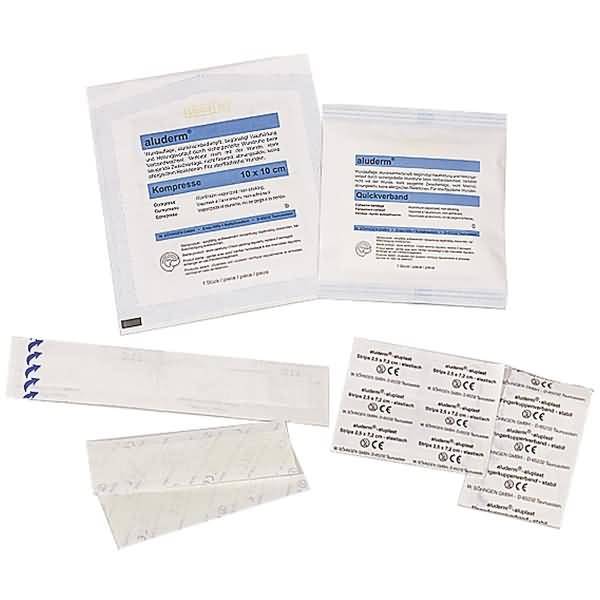 • Inhalt: aluderm Kompresse, aluderm Quickverband, aluderm-aluplast Pflasterstrips und gebrauchsfertigen SÖHNGEN-Silk Pflasterstreifen