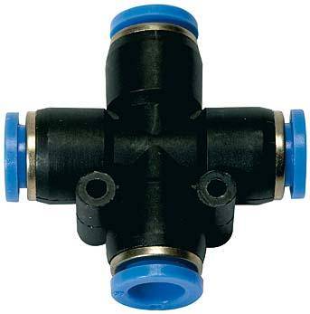 X-Steckverbindung • Schnellsteckverbinderserie aus Kunststoff bzw. vernickeltem Messing • Die Teile sind einsetzbar in Verbindung mit Kunststoffschläuchen und Kupferrohren • Andruckring: Kunststoff • Arbeitsdruck: max. 15 bar • Temperaturbereich: –20