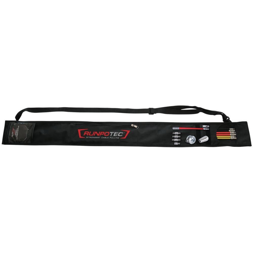 Durch das Verwenden der RUNPOSTICKS entsteht eine flexible Führungsspitze, dadurch können engere Bögen problemlos überwunden werden. Die Stäbe sind jeweils um 1m verlängerbar und können als weichere Führungssonden an Glasfaserstäbe Ø 7,5 mm, Ø 9 mm und auch Ø 11 mm adaptiert werden. Zusätzlich ist es auch noch möglich an der Spitze das Zubehör anzuschrauben wie z.B. Laufrolle oder RG Führungsspitze (RUNPOGLEITER). Lieferumfang: 1 x Haspel-Führungssonden-Set - RUNPOSTICKS 13-teilig inkl.: 2 x RUNPOSTICKS gelb Ø 4,5 mm (weich), 2 x RUNPOSTICKS schwarz Ø 5,5 mm (mittel), 2 x RUNPOSTICKS rot Ø 7,5 mm (hart), 1 x RG7 Führungsspitze mit Frontgewinde, 1 x Laufrolle Ø 25 mm, 3 x Verbindungsgewinde, 1 x Blindschraube, 1 x Anfangsbirne Ø 20 mm mit RTG Ø 12 mm, 1 x Aufbewahrungstasche