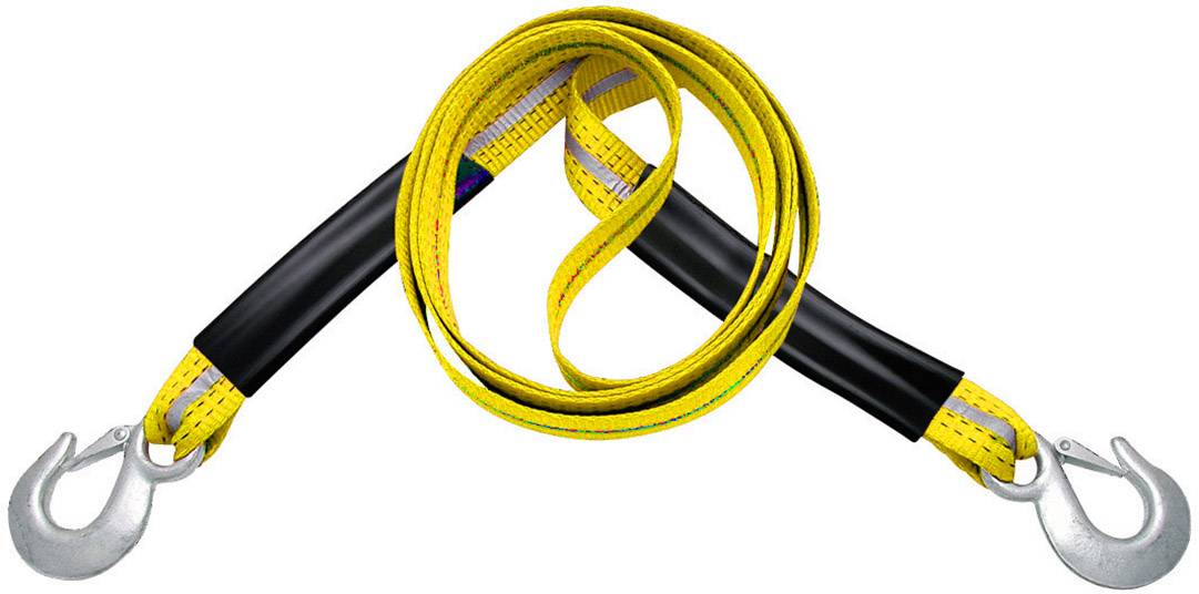 Profi-Schlepp-Seil aus strapazierfähigem, ruckdämpfendem Polyamid-Band mit 2 Karabinerhaken und eingewebtes Reflexband. Seillänge 4 m.