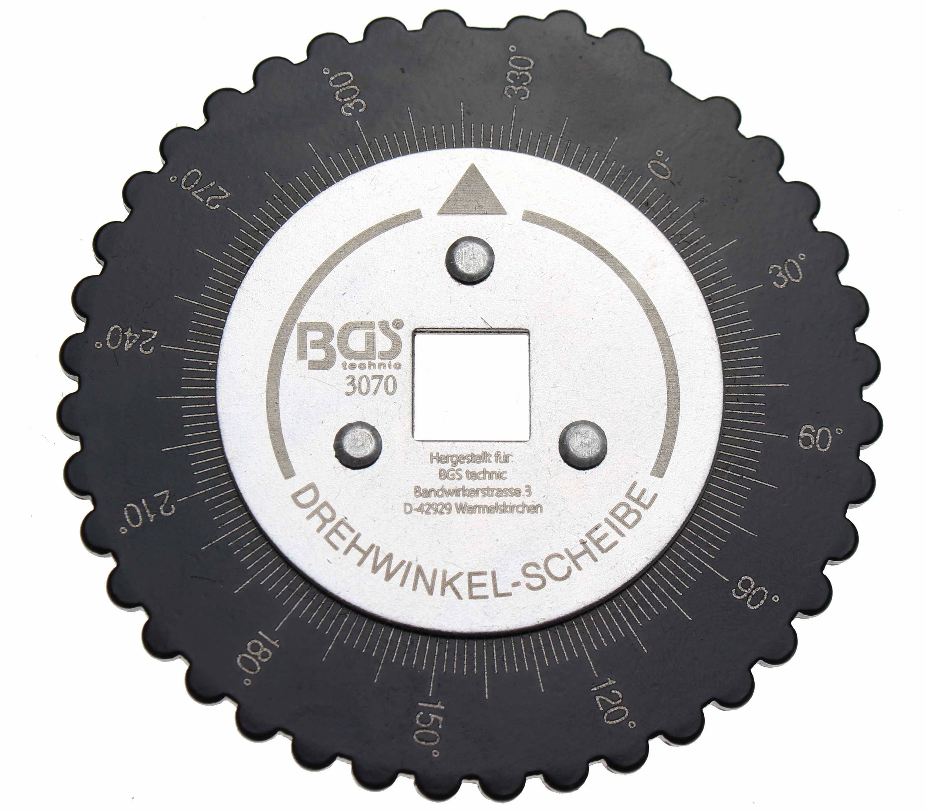 zum Winkelanzug in Verbindung mit Drehmomentschlüssel, Knarre, Steckschlüsseleinsatz und Zubehör Hilfsgerät für maßgerechten Schraubenanzug Skala 90 mm Ø, 0 - 360°, Unterteilung zu 2° Bruttogewicht: 60 g Antriebsprofil: - Innenvierkant Verpackung für Wandbehang geeignet: - Ja Antriebsprofilgröße, metrisch: 12,5 mm Antriebsprofilgröße, imperial: 1/2 "