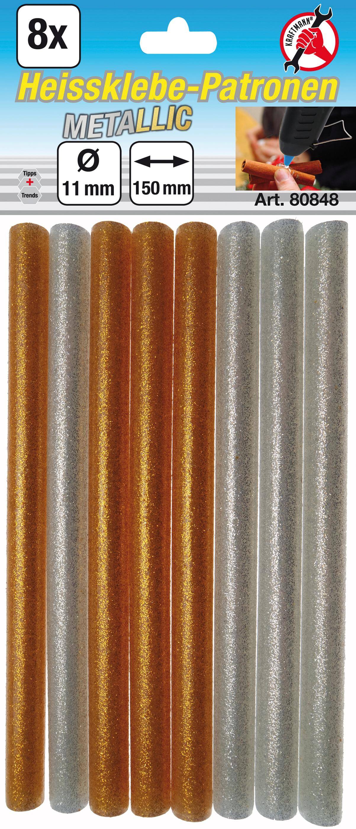 geeignet für Heißklebepistole BGS 8050 Lieferumfang: 4 Klebestifte, Ø 11 x 150 mm, gold-metallic 4 Klebestifte, Ø 11 x 150 mm, silber-metallic