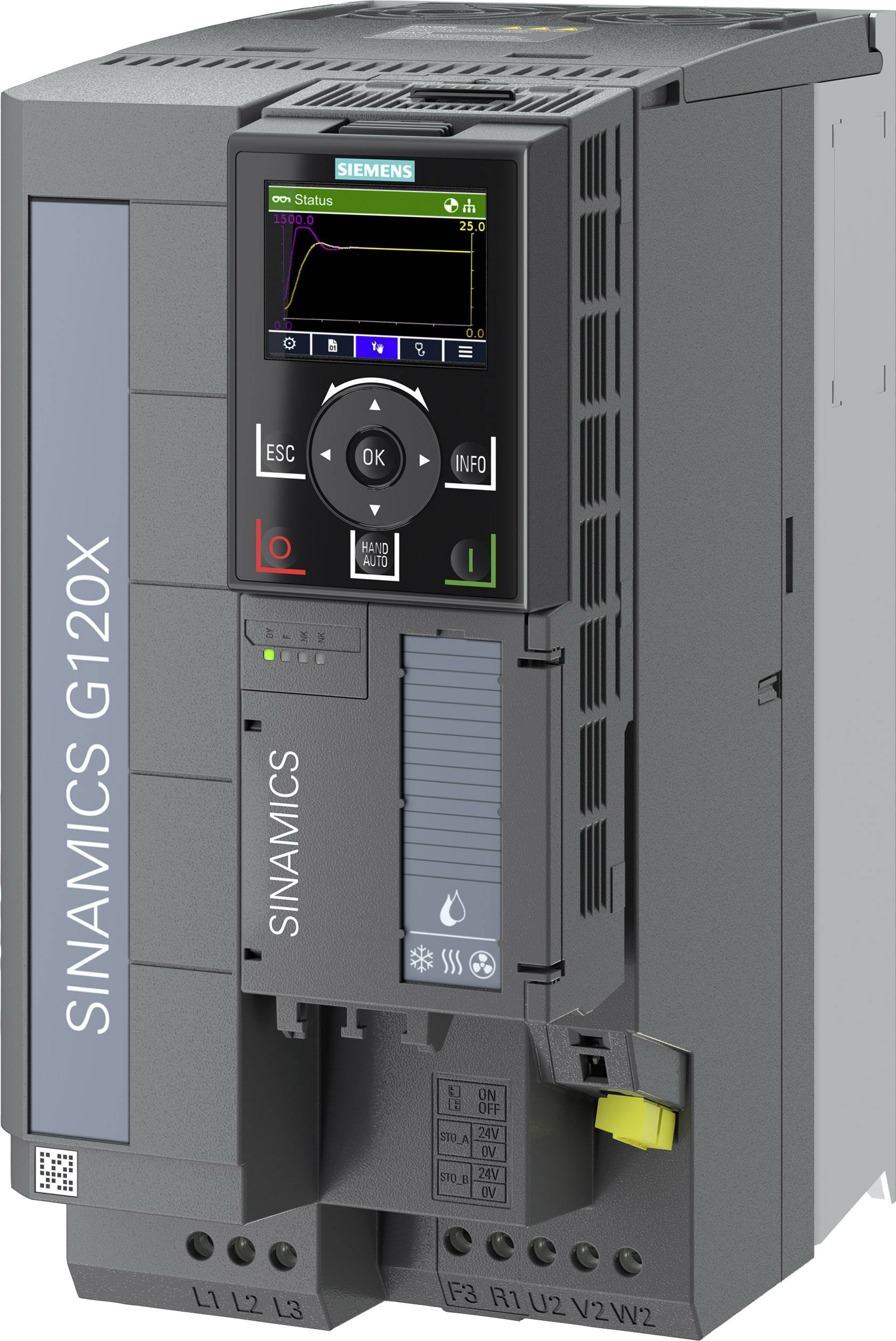 SINAMICS G120X Bemessungsleistung: 11kW bei 110% 60S, 100% 240s Funkentstörfilter für Kategorie C2 3AC380-480V+10/-20% 47-63Hz Umgebungstemperatur -20 bis +45°C Baugröße:FSC Schutzart IP20 / UL open Type Frequenzumrichter SINAMICS G120X beherrsche die Elemente für die Applikationen Pumpen/Lüfter, die Branchen Wasser/Abwasser (W/WW) sowie die Gebäudetechnik/HVAC. Der SINAMICS G120X ist überzeugend durch einfache Auswahl und Bestellung, einfaches Handling „out of the box und einfache Integration in die Applikation. Einfaches Setup mit dem SINAMICS G120 Smart Access Module oder dem Bedienpanel IOP-2. Der SINAMICS G120X läuft stabil unter allen Netzbedingungen, erfüllt die EMV-Kategorien C2 und C1 optional und ist durch seine Betriebstemperatur von -20 °C bis +60 °C besonders robust. Spezifische Branchenfunktionen wie Rohrbefüllungsmodus und Bypass Funktion machen den Umrichter besonders effizient. Sämtliche Geräte der Baureihe sind durchgängig und einheitlich in allen Spannungen und Netzen sowie konsequent auf einen kostenoptimierten und ressourcenschonenden Betrieb ausgerichtet. Ihre kompakte Bauform spart Platz im Schaltschrank. Der SINAMICS G120X steht in neun Baugrößen in einem Leistungsbereich von 0,75 kWbis 630 kW zur Verfügung. Zusätzlich enthält diese Variante DC-Klemmen für den Anschluss von du/dt-Filtern. Der Frequenzumrichter SINAMICS G120X kann mittels verschiedener Optionen wie externes Basic Operator Panel (BOP-2), dem Smart Access Module (SAM) oder dem intelligent Operator Panel (IOP-2) einfach inbetrieb genommen werden. SINAMICS - einfach mein Antrieb.