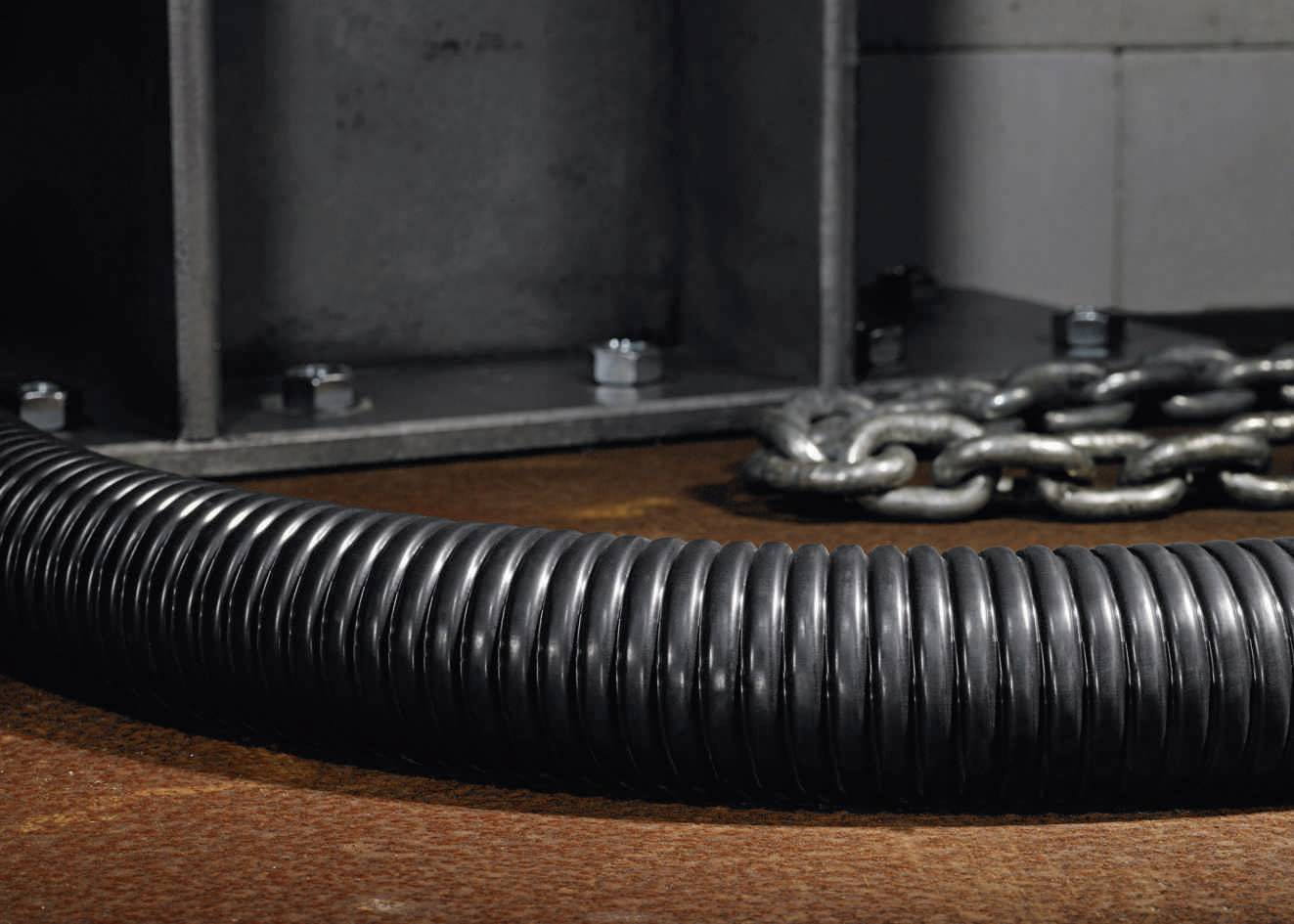 Flexibler Schutzschlauch aus galvanisiertem Stahl mit PVC-Mantel. Hohe Druckfestigkeit, hohe Zugfestigkeit, hochflexibel und flüssigkeitenundurchlässig. Gut beständig gegen Laugen, Säuren und Chemikalien. Für Anwendungen im Maschinen- und Anlagenbau.