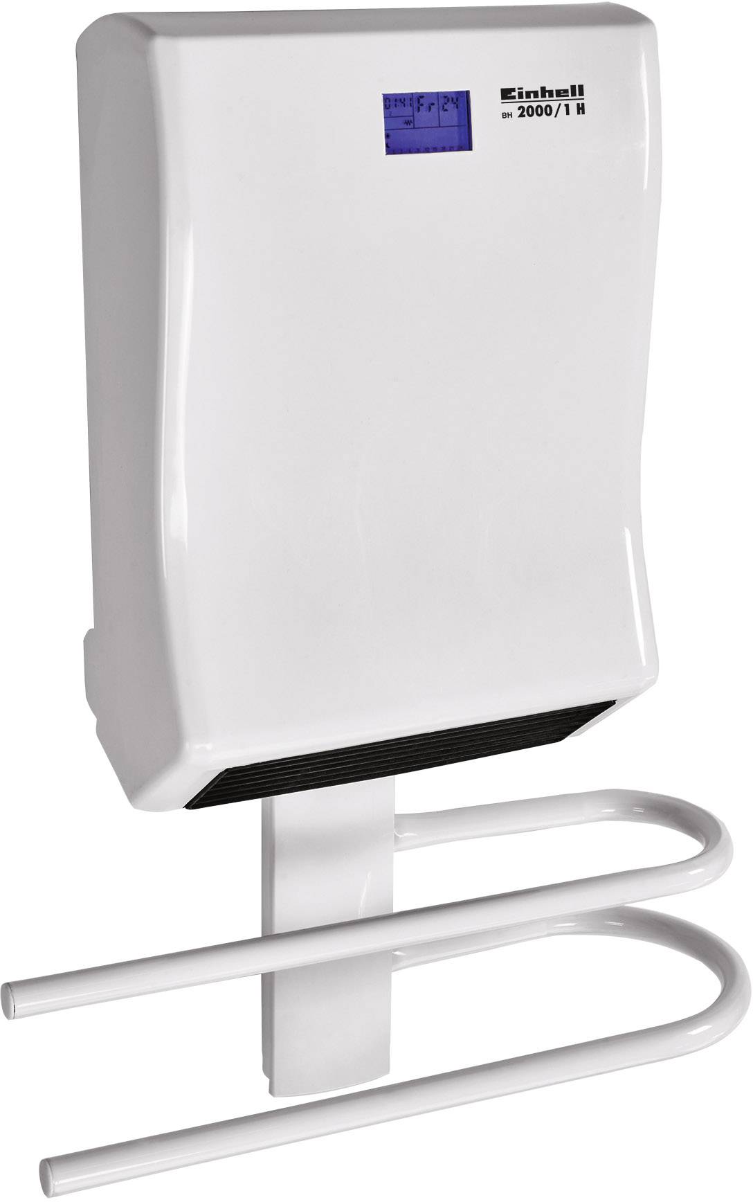 Der Einhell Badheizer BH 2000/1 H ist ein moderner Wandheizer, der sich bestens für die Nutzung im Bad/WC, im Hobby- und Kellerraum sowie im Hauswirtschaftsraum oder im Wintergarten eignet. Der Badheizer verfügt über eine Wandhalterung und kann in drei Heizmodi betrieben werden: Komfort, ECO und Frostschutz. In zwei Heizstufen kann der Raum mit 1.000 Watt oder 2.000 Watt erwärmt werden, bequem einstellbar durch das Thermostat. Einfache und individuelle Einstellungsmöglichkeiten liefern zudem die 24 h-Zeitschaltuhr und der 7-Tage-Timer mit einstellbarem Heizprogramm. An der LCD-Funktionsanzeige können die Einstellungen auf einem Blick abgelesen werden. Ein geräuscharmer Lüfter sichert die gleichmäßige Verteilung der Luft im Raum. Zudem erkennt der Badheizer, ob ein Fenster im Raum geöffnet ist. Der integrierte Überhitzungsschutz gewährleistet zudem den sicheren Betrieb, da sich das Gerät automatisch ausschaltet, sobald es überhitzt. Der Handtuchhalter sorgt für die schnelle Trocknung der aufgehängten Badtextilien.