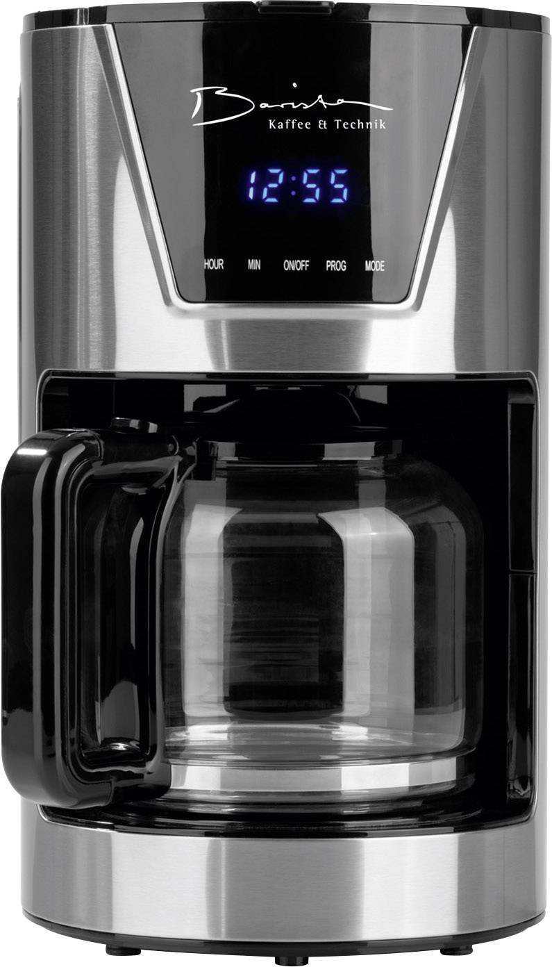 Lassen Sie sich ab sofort von verführerischem Kaffeeduft wecken und genießen Sie modernen Bedienkomfort gepaart mit zeitlos schönem Design! Mit der digitalen Kaffeemaschine von "Barista" können Sie ihren Kaffee dank der integrierten Timerfunktion schon am Vorabend ganz bequem „in Auftrag geben“. Die Maschine startet dann automatisch zur Wunschzeit mit der Zubereitung. Sämtliche Einstellungen lassen sich über das moderne Touch-Display vornehmen - selbst die Kaffeestärke ist in drei Stufen für das individuelle Wunscharoma einstellbar. Bis zu 12 Tassen Filterkaffee passen in die 1,5-l-Glaskanne, die von der Warmhalteplatte zuverlässig auf Temperatur gehalten werden - so darf der Kaffeegenuss auch gern mal etwas länger dauern. Vergessen Sie künftig die Sorge, ob Sie Ihre Kaffeemaschine beim Verlassen des Hauses eingeschaltet gelassen haben, denn die digitale Kaffeemaschine von "Barista" schaltet sich ganz von allein aus.