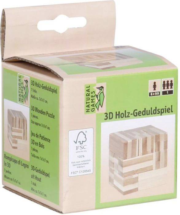 0061421076, NG 3D Holz-Geduldspiel Würfel #7cm, A0-24