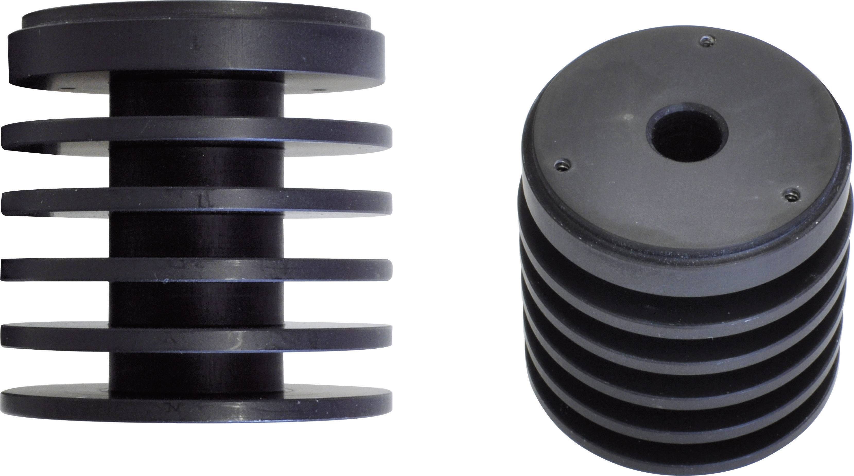 Massiver, aus schwarz eloxiertem Aluminium bestehender Kühlkörper für das passive Kühlen von Power-LEDs mit einer Leistungsaufnahme von bis zu 3 x 3 W.