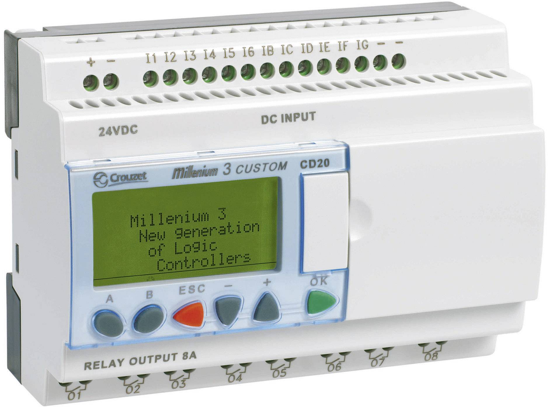 Die Standardsteuerungen der Millenium 3 - Familie verfügen über zahlreiche Bausteine wie Nockenschaltwerke, Winkelabhängige Nockenschaltwerke, Pumpen- bzw. Lastmanagement, Speicherbausteine, Druck- und Durchflussmessung, Regler (Mehrpunkt, PID Analog oder PWM), Wurzelziehen, Sinus, Cosinus, gewichteter Mittelwert uvm. Damit beginnt Millenium 3 dort wo viele Kleinsteuerungen aufhören und bildet die kostengünstige Grundlage für zahlreiche Anwendungen: Maschinenbau, Wasserversorgung, Gewächshäusern und Wasseraufbereitung sind nur einige Beispiele. PWM oder PulsWeitenModulation ist ein kostengünstiges Verfahren um Heizungs- und Kühlungsvorgänge zu steuern, Motoren zu steuern oder über einen Umsetzer eine Spannung von 0 - 10 V/DC zu erzeugen (kostengünstige Analogausgänge). Die analog verwendbaren Eingänge können 0 - 10 V/DC und 0 - 24 V/DC verarbeiten.