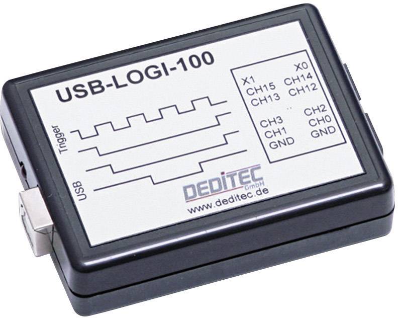 Der USB-LOGI-100 Logik Analysator bietet die Möglichkeit den zeitlichen Verlauf von digitalen Signalen bildlich am Monitor darzustellen. Die Daten können mit einer Geschwindigkeit von maximal 100 MSamples/sec auf allen 18 Kanälen abgetastet werden. Im Lieferumfang ist die Software Logi+ enthalten, die ein einfaches Messen unter Windows ermöglicht.