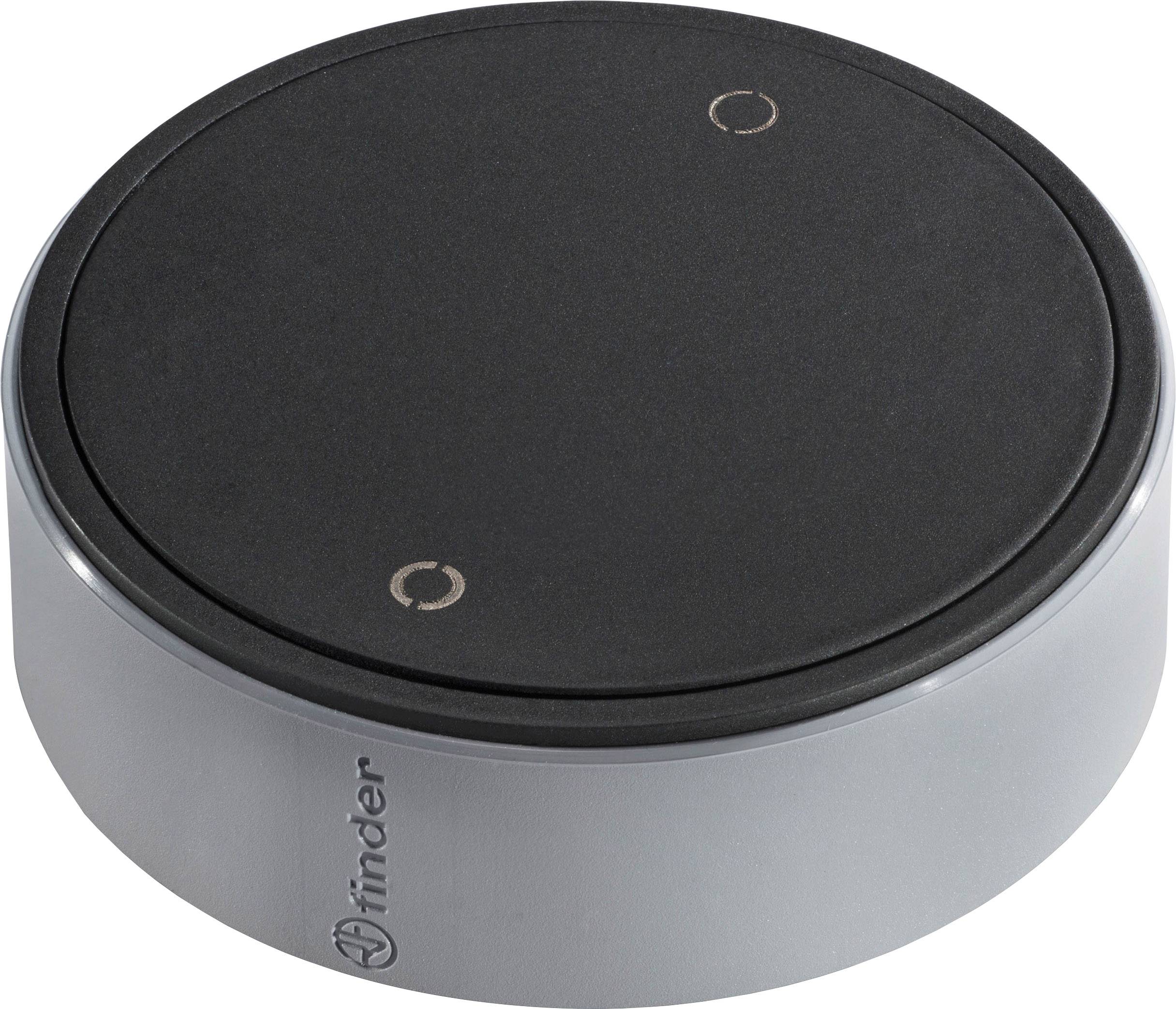 Der Fernbedienungs-Funktaster BEYON ist optimal auf das Finder-YESLY-System abgestimmt und kommuniziert auf Tastendruck ohne externe Energiezufuhr oder Batterien mit den Aktoren. Er ist als Tischtaster konzipiert, der entweder lose betrieben wird, mittels optionaler Magnetscheibe an ferromagnetische Flächen oder einen anderen BEYON geheftet wird, oder mit dem Klebepad auf Glas-, Holz-, oder Metalloberflächen fixiert werden kann. Dieses Designerprodukt kann in Verbindung mit den YESLY-Aktoren zum Schalten oder Dimmen verwendet werden und vorprogrammierte Szenarien aktivieren. Die Einbindung in das System erfolgt mittels der Finder Toolbox + App, die für iOS und Android kostenlos erhältlich ist. Der Taster sendet nur während der Betätigung einen Impuls – eine elektromagnetische Dauerbelastung ist nicht zu befürchten. Die Kommunikation wird auf Basis der ausgereiften Bluetooth® Low Energy Technologie realisiert und ist zudem 128-Bit-verschlüsselt. Die Reichweite von ca. 10 m kann bei Bedarf mit den optional erhältlichen Repeatern erweitert werden. Die mitgelieferten Silikonringe in Blau, Grau und Weiß sind ein weiteres Unterscheidungsmerkmal außer der Gehäusefarbe und ermöglichen schnelle Zuordnung und Schutz vor Beschädigungen.