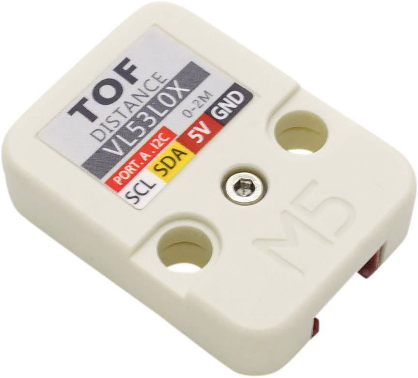 Beim ToF (time of flight) Entfernungsmesser aus der M5Stack-Reihe werden Flugzeittechniken eingesetzt, um die Entfernung zwischen dem Emissionspunkt und dem Reichweitenpunkt eines Objekts zu messen. Dabei wird die Umlaufzeit eines von einem Laser gelieferten künstlichen Lichtsignals gemessen. Dieses Gerät verfügt über einen VL53L0x Distanzmesssensor, der im Gegensatz zu herkömmlichen Technologien eine genaue Distanzmessung unabhängig vom Reflexionsgrad des Ziels ermöglicht. Es kann absolute Entfernungen von bis zu 2 m in weniger als 30 ms messen.
