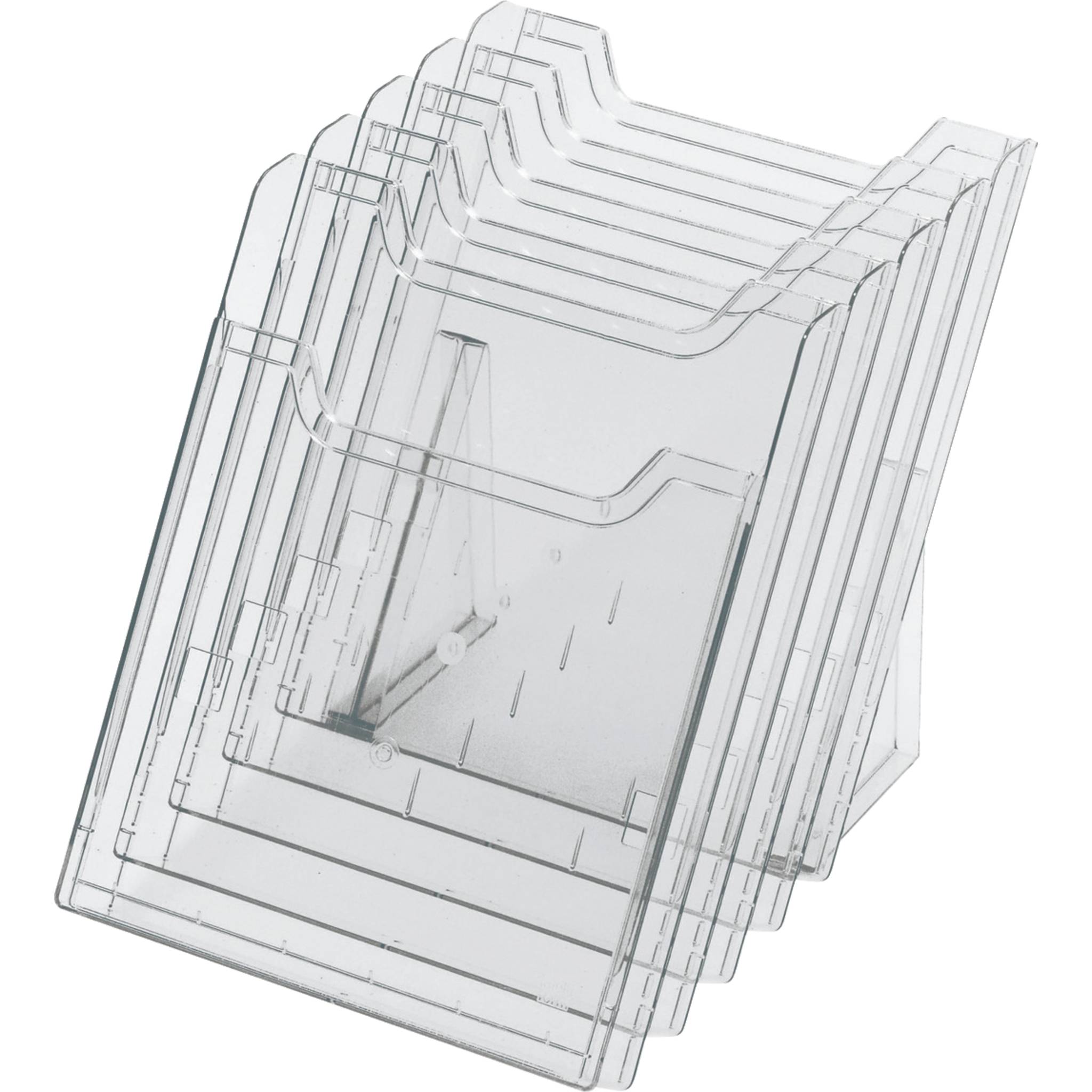 Exacompta, Tischprospektständer für A4, 5 Fächer, Exacryl Mit dem Tischprospektständer aus transparentem Polystyrol können Sie Ihre Prospekte, Flyer und andere Werbe- oder Informationsmaterialien zur Selbstbedienung präsentieren und auslegen. Der Tischprospektständer passt sich Ihren Bedürfnissen an und ist beliebig erweiterbar. Die Fülltiefe je Fach beträgt 28 mm. Der Tischprospekthalter ist ein Monobloc-Gehäuse (aus einem einzigen Stück gefertigt) und muss daher nicht zusammengebaut werden. Hergestellt in Europa mit einer Garantie von 25 Jahren.
