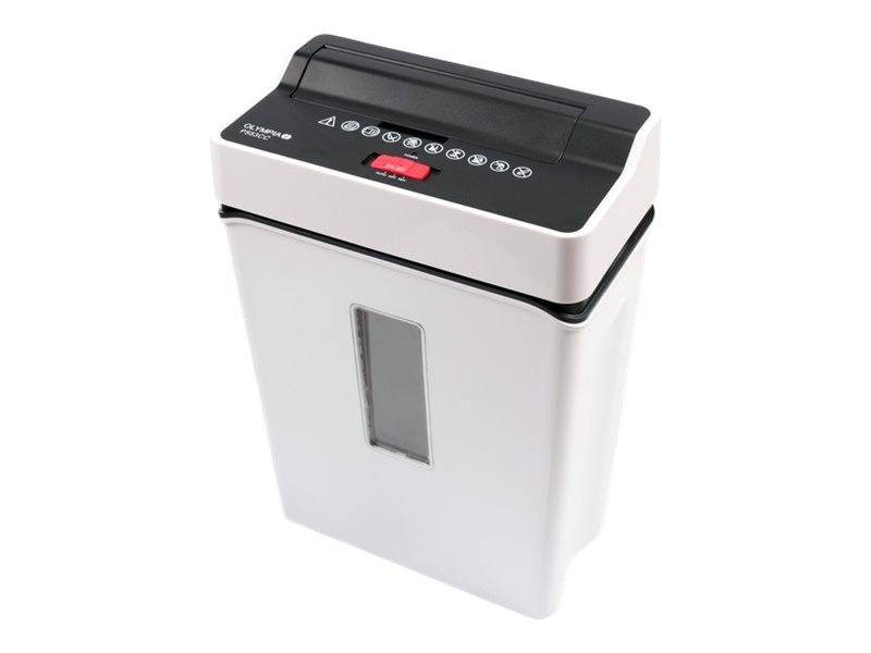 Olympia PS 53 CC. Aktenvernichter Typ: Kreuzschreddern, Arbeitsbreite: 22 cm, Aktenvernichter Größe: 4 - 40 mm. Stromverbrauch (in Betrieb): 300 W, AC Eingangsspannung: 230 V, AC Eingangsfrequenz: 50 Hz. Breite: 303 mm, Tiefe: 170 mm, Höhe: 428 mm