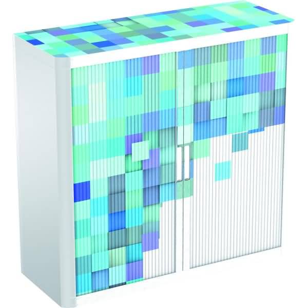 Rollladenschrank easyoffice BxTxH 86x37,5x104cm Motiv geometrisch blau 3