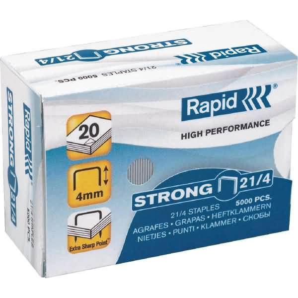 Rapid 24867400. Typ: Klammerpack, Schenkellänge: 4 mm, Kapazität: 5000 Heftklammern. Breite: 56 mm, Höhe: 25 mm, Gewicht: 0,1 g