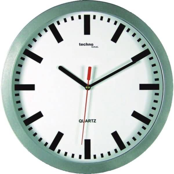 • Quarzwanduhr , 30 cm Durchmesser, silbernes Gehäuse/Kunststoffrahmen