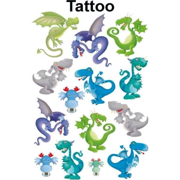 Kids Tattoos Drachen 14 Motive bunt 14 Stück
