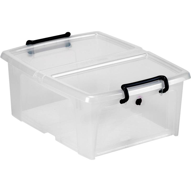Strata HW695. Produkttyp: Aufbewahrungsbox, Produktfarbe: Schwarz, Transparent, Form: Rechteckig. Volumen (l): 20 l, Breite: 370 mm, Tiefe: 190 mm. Verpackungsbreite: 370 mm, Verpackungstiefe: 400 mm, Verpackungshöhe: 460 mm