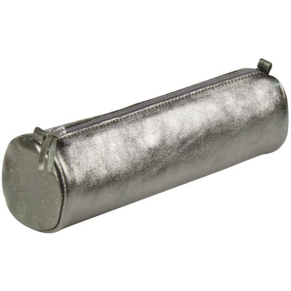 • Ein rundes Schlampermäppchen in moderner Perlmuttfarbe.