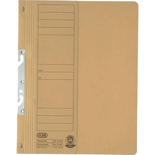 • Heftung (Angabe ob kaufmännische-/Amtsheftung und/oder ob mit beweglichem Falz): Einhakmetallbeschlag mit Sicherungsfeder zum Festklemmen an der Ordnermechanik. Mit kaufmännischer Heftung