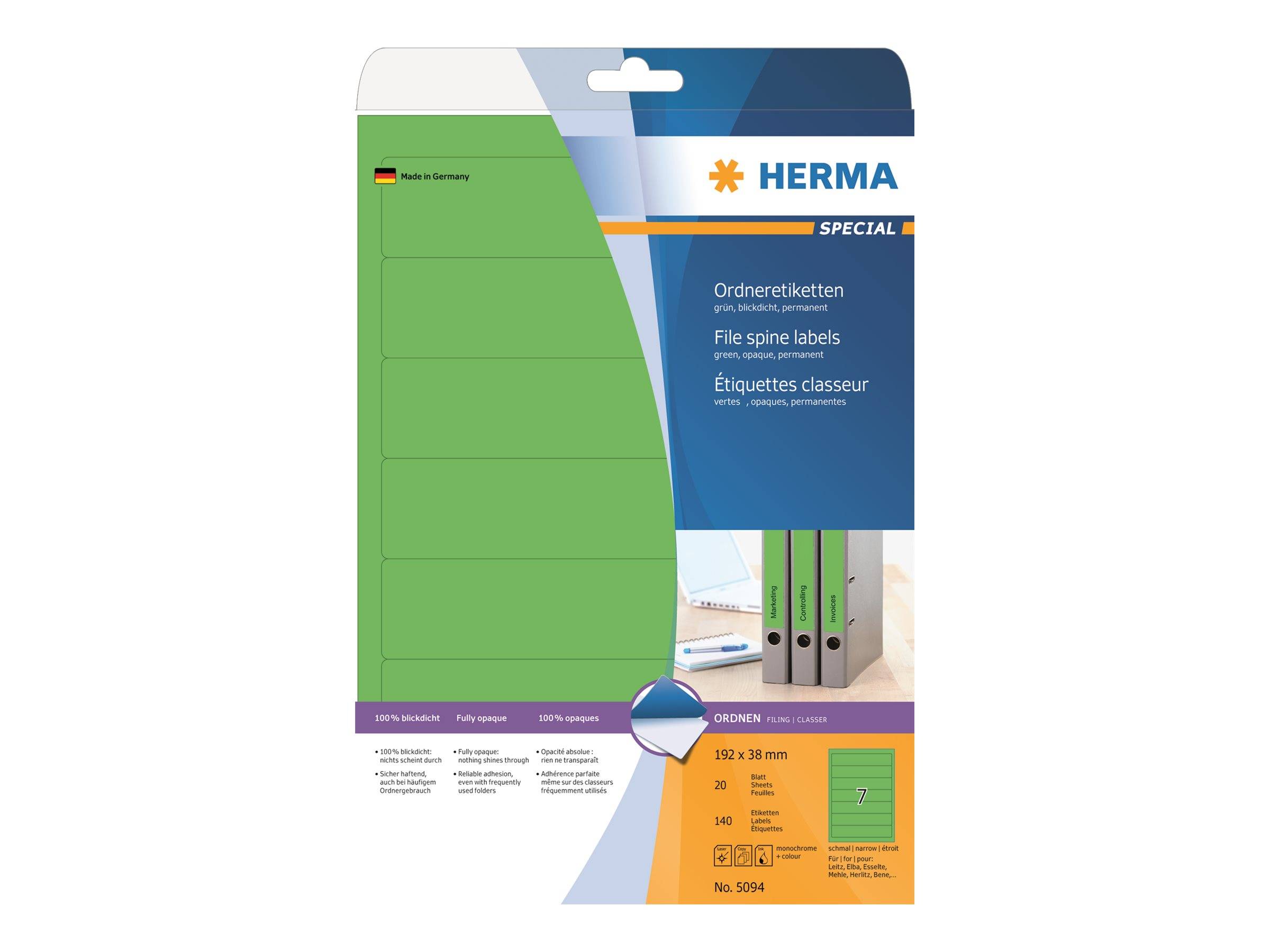 HERMA Special - Papier - matt - permanent selbstklebend - grün - 192 x 38 mm 175 Etikett(en) (25 Bogen x 7)