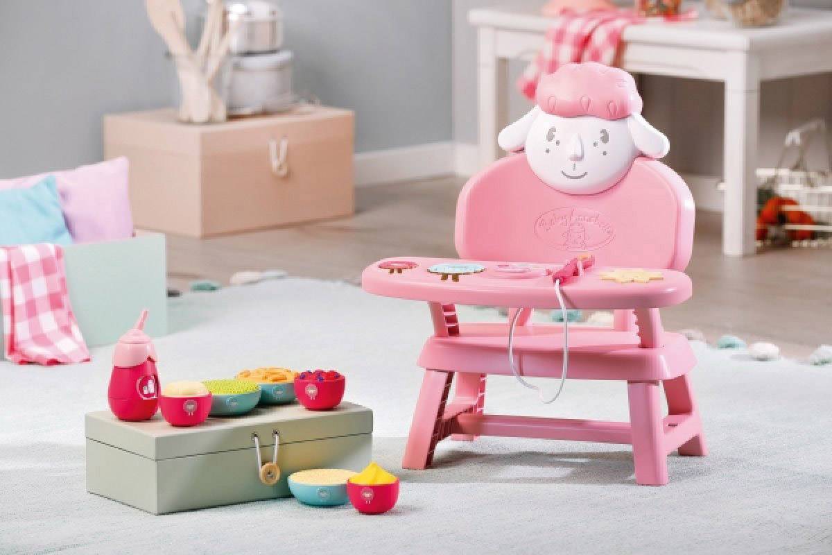 Baby Annabell isst schon Brei. Wir haben aber noch nicht so ganz herausgefunden, was sie wirklich mag. Dabei hilft der rosa Stuhl mit Schäfchen-Lehne und Esstisch. Was darf es zum Hauptgang sein? Karotten-, Erbsen- oder Reisbrei? Wird die Schüssel auf dem entsprechenden Schaf platziert, sagen Licht und Sound, ob Baby Annabell ihr Mittagessen mag oder eben nicht. Leuchtet das Feld grün mumpfelt die Kleine fröhlich vor sich hin und wartet ungeduldig auf den nächsten Löffel. Leuchtet es aber rot, dann lieber ein anderes Gericht ausprobieren, sonst wird Baby Annabell mit einem lautstarken #Bähhh! protestieren. Zum Nachtisch gibt es Pudding, Fruchtmus und Birnenbrei und im Fläschchen Milch, Apfelsaft und Wasser. Wie wird ihr Lieblingsmenü heute aussehen? Original Kleidung/Accessoires für die Baby Annabell Markenspielpuppe Das hochwertige Zubehör fördert die Fantasie und bringt neue Spielanregungen und #möglichkeiten Batterien erforderlich Baby Annabell Lunch Time Tisch mit Licht- und Sound-Effekten. Inkl. 3 Hauptmahlzeiten, 3 Desserts, Flasche und Löffel.