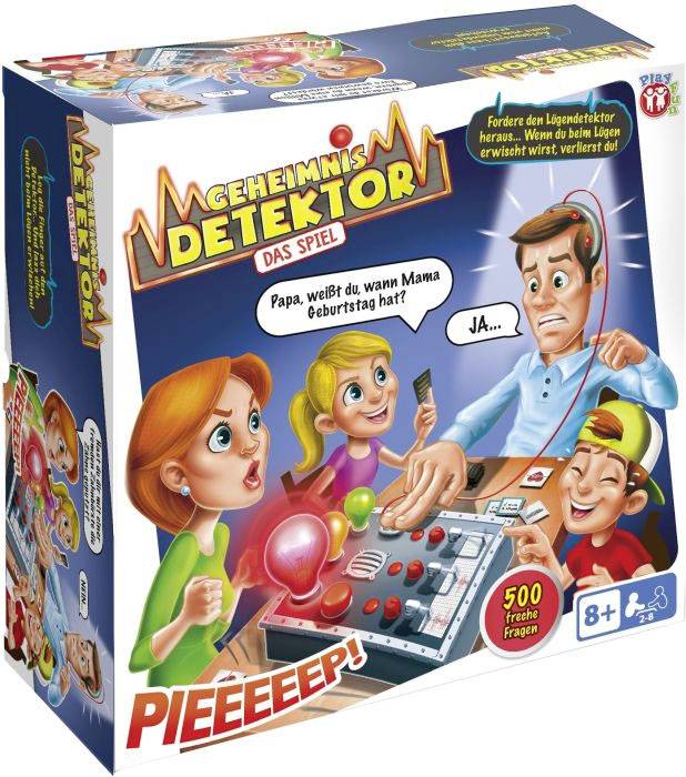 Wahrheit oder Lüge? Beim Geheimnis Detektor muss sich die ganze Familie in Acht nehmen, denn blitzschnell wird auch diesmal jemand beim Schwindeln erwischt! Es wird spannend: Zuerst werden die Finger auf dem Detektor platziert und das Kopfband angelegt. Ein zweiter Spieler stellt nun Fragen, die nur mit Ja und Nein beantwortet werden dürfen. Erkennt die Maschine die Antwort als Lüge, verliert derjenige einen Punkt. Ist die Person laut Geheimnis Detektor nervös, so muss die Frage mit einer Erklärung erneut beantwortet werden. Dann ist der nächste Spieler an der Reihe. Wirst du dreimal beim Lügen erwischt, bist du disqualifiziert. Wer wird der Spieler mit dem besten Pokerface und den stärksten Nerven sein? Ab 8 Jahren.