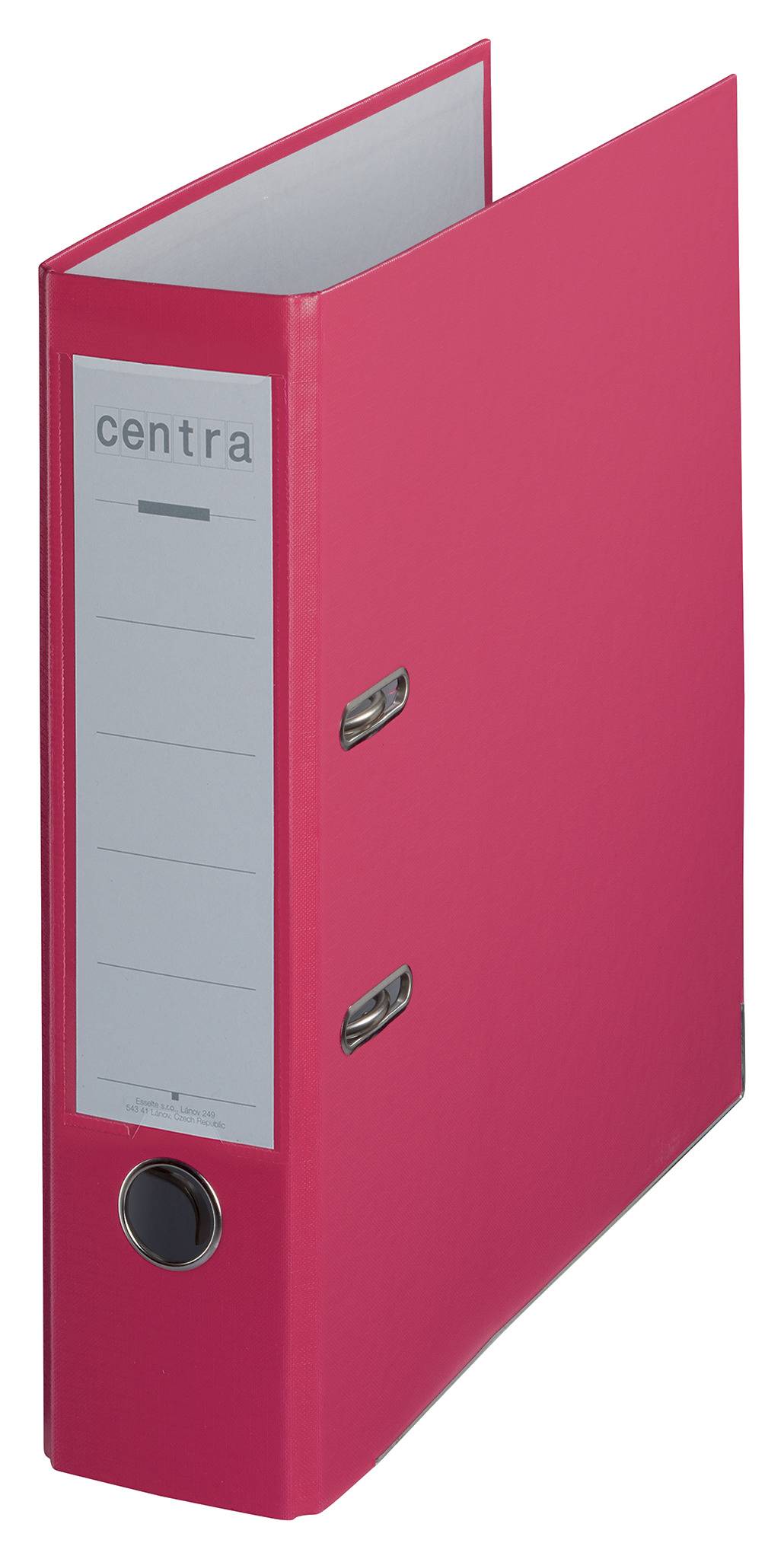 Centra Ordner Plastik Chromos, mit Hebelmechnik. Mit Schlitzen, mit Griffloch, mit Kantenschutz, mit Sichttasche am Rücken und auswechselbarem Rückenschild. Material: Einband mit umweltschonender Polypropylen-Folie kaschiert, innen Polyethylen-beschichtetes, graues Papier. Format: für A4, 317 x 285 mm, Rückenbreite: 80 mm. Farbe: fuchsia.