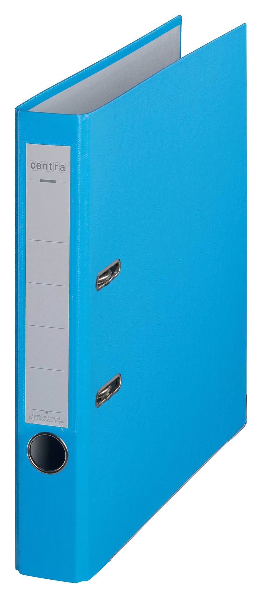 Centra Ordner Plastik Chromos, mit Hebelmechnik. Mit Schlitzen, mit Griffloch, mit Kantenschutz, mit Sichttasche am Rücken und auswechselbarem Rückenschild. Material: Einband mit umweltschonender Polypropylen-Folie kaschiert, innen Polyethylen-beschichtetes, graues Papier. Format: für A4, 317 x 285 mm, Rückenbreite: 52 mm. Farbe: hellblau.