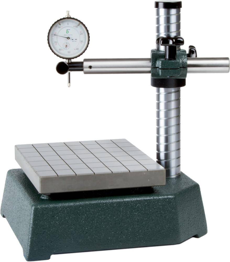 Kleinmesstisch mit horizontal drehbarem Messarm | Tischfläche geläppt, feinstgeschliffen | Aufnahmebohrung für Messuhr-Ø 8 mm H7 (auswechselbar) | Horizontalmessarm drehbar (jeder Punkt des Messtischs wird erreicht) | Gewindesäule und Stellring | Justier