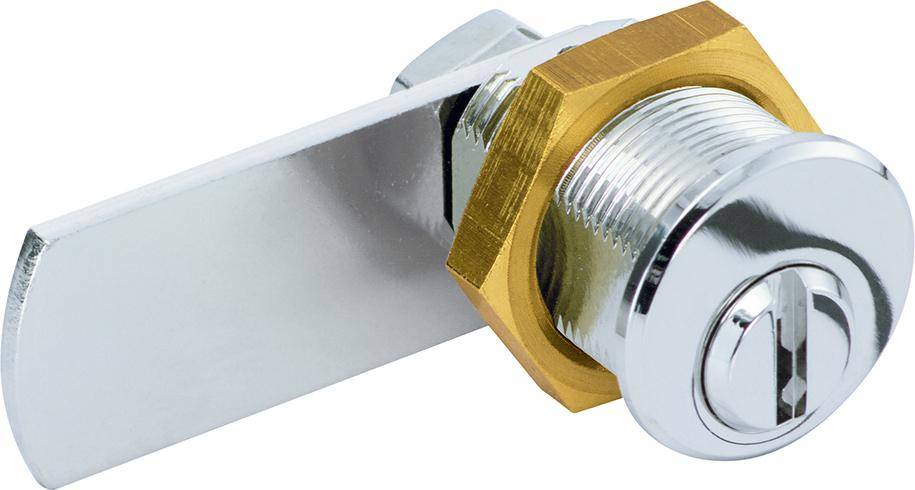• Zylinder Messing, Schließhebel Stahl vernickelt, Mutter M19 Messing, Mutter M10 vernickelt