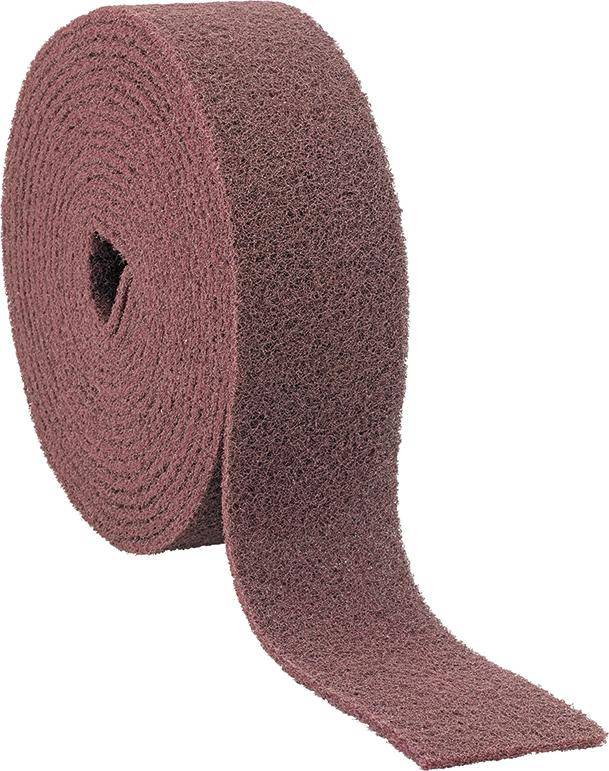Schleifvlies-Rolle, Korund (A) Ausführung: Sehr anpassungsfähiges Schleifvlies. Rollenlänge 10 m. Anwendung: Zur Bearbeitung aller Metalle. Ideal zum Finishen und Polieren von Oberflächen. Nass und trocken einsetzbar. Merkmale: Marke: FORMAT WGNr.: W844
