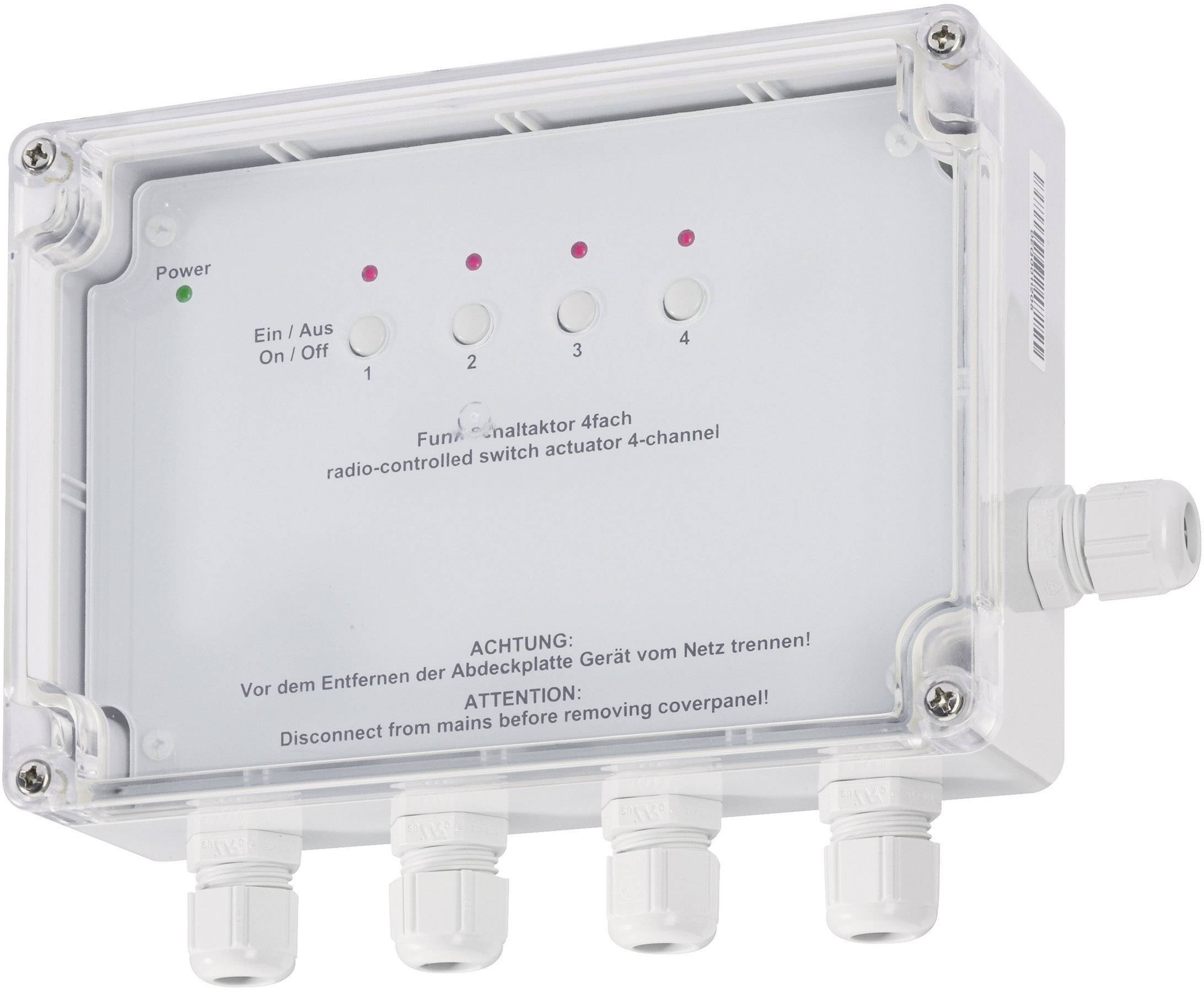 Strahlwassergeschützter, robuster Schaltaktor mit 4 unabhängigen Schaltkanälen für den Einsatz im Außenbereich oder in Feuchträumen.