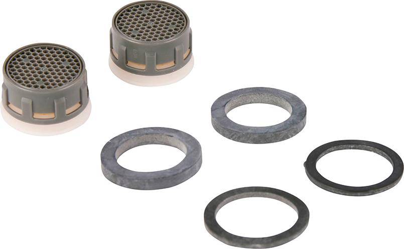 Mischdüse-Siebeinsatz, 2er-Set, mit Dichtung • Mit Dichtungen • Kalkschutz • Eco-8-Funktion (Durchflussmenge ca. 8 Liter/Minute) • Geeignet für Aktionsleisten • Lieferung: 2er-Set-Blisterverpackung.