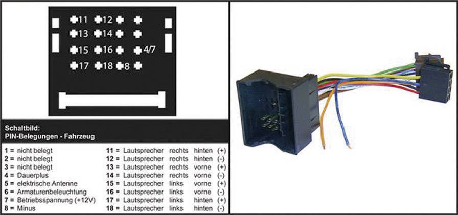 ISO Stecker auf OEM Werksverkabelung · Adapter-Belegung: Strom + 4 Lautsprecher.