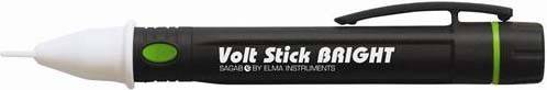 Spannungsdetektor mikroprozessorgesteuerter, integrierter Taschenlampe, Einsatzmöglichkeit in zwei Empfindlichkeitsbereichen: der Standard 230V Spannungsbereich ist immer aktiv und eine zweite, hohe Sensitivität im 24V Spannungsbereich wird durch Betätigung der Test-Taste für 2 Sekunden aktiviert, wenn der Volt-Stick-Bright nicht in Gebrauch ist, wird der "