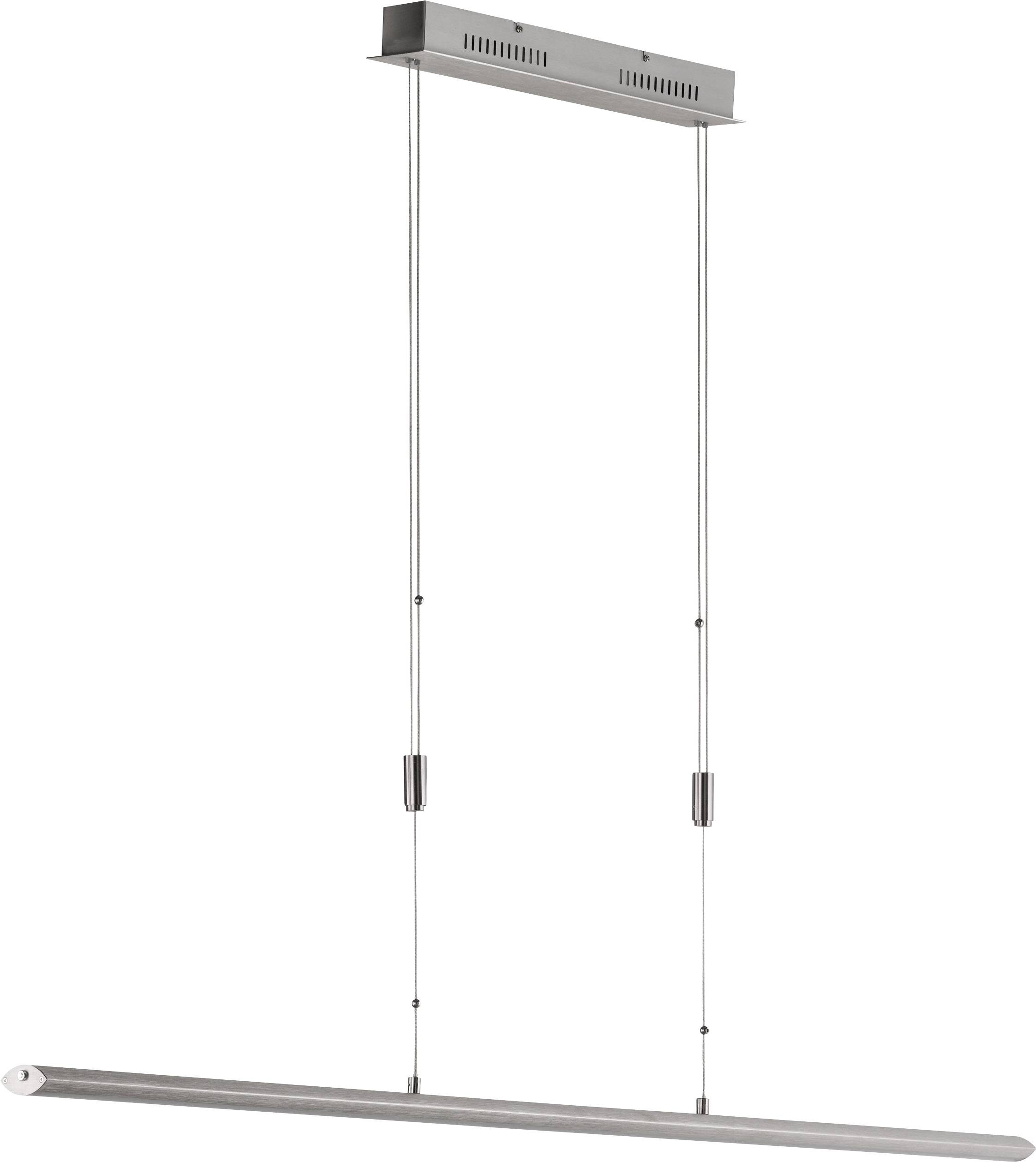 Durch die praktische und mit wenigen Handgriffen getätigte Höhenverstellung lässt sich die Hängeleuchte Beat immer auf die passende Abhängung bringen - ob über dem Esstisch oder dem Couchtisch. Schlicht und modern in der Gestaltung, passt sie in jeden modernen Einrichtungsstil und spendet dank moderner LED-Technik energiesparende, warmweiße Beleuchtung, die sich durch den seitlich am langen Schirm der Leuchte angebrachten Taster stufenlos dimmen lässt. Durch die satinierte Abdeckung aus Acryl erhellen die LEDs damit blendfrei und immer in der gewünschten Lichtstärke den darunter liegenden Bereich.