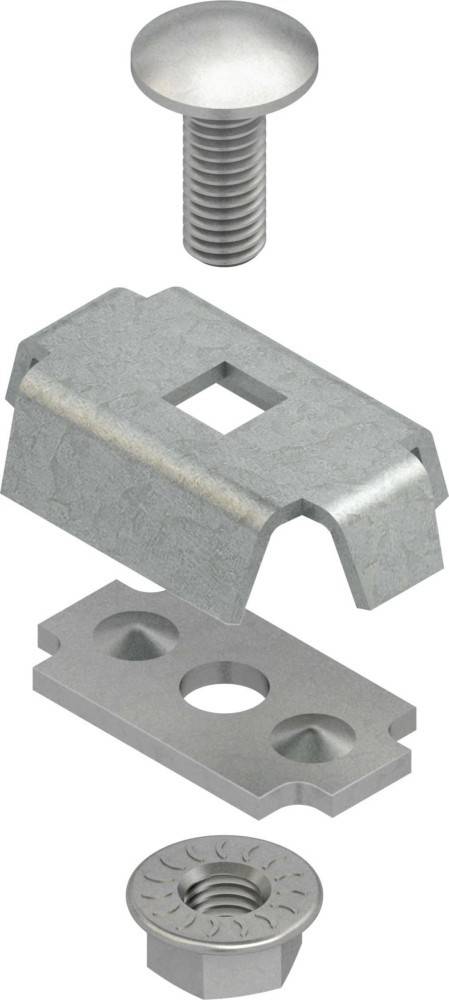 Universalverbinder, zweiteilig, zur Erstellung von durchlaufenden Gitterrinnen und zur variablen Herstellung von Formstücken, einschließlich anteilmäßigem tauchfeuerverzinkten Befestigungszubehör. Verwendbar für : Gitterrinnen mit einem Draht-Ø 3,9 - 5 mm Werkstoff : Stahl, bandverzinkt nach DIN EN 10346