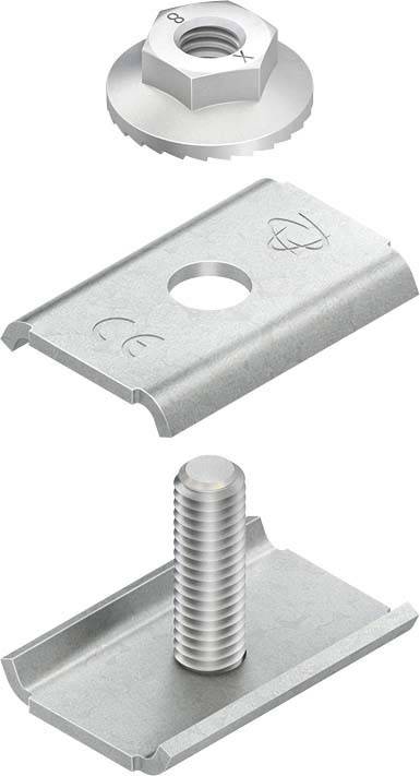 Gitterrinnen-Universalverbinder, dreiteilig, zur Erstellung von Längsverbindungen durchlaufender Deckenträger, einschließlich tauchfeuerverzinkte und verzahnte Sonderflanschmutter ähnlich DIN EN 1661. Zur Verwendung für Unterdecken mit brandschutztechnischen Anforderungen (Muster-Leitungsanlagen-Richtlinie MLAR 2/2015) bitte Zusatzvorschriften beachten! Zur Verwendung im Funktionserhalt bitte Zusatzvorschriften beachten! für Deckenträger : DT 50. ... DV Abmessungen (ca. Maße) L x B : 30 x 20 mm Gewinde : M 6 Gewindelänge : 20 mm Werkstoff : Stahl, galvanisch verzinkt nach DIN EN ISO 19598, blaupassiviert