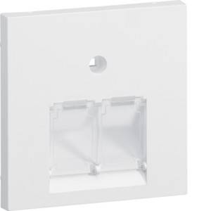 Zentralscheibe UAE 2-fach, für Rahmenblende 55, hfr, reinweiß. Zentralscheibe für UAE Steckdose 2-fach, Montagerahmen Keystone 2-fach, Montagerahmen Typ A (BTR E-DAT Modulformat) 2-fach, Anschluss Modul 2 x RJ45, Datenanschluss Patch-Modul. Ohne Beschriftunsgfeld. Zur Verwendung mit Rahmenblenden für Brüstungskanäle mit Zentralscheibenmaß 55 x 55 mm und optional integriertem Beschriftungsfeld.