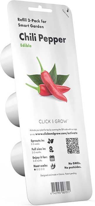 3 Kapseln mit SMART SOIL Technologie, enthält hochwertiges Saatgut, passend für den SMART GARDEN 3 und SMART GARDEN 9. 100 % natürlich: biologisch abbaubar und frei von Pestiziden, Fungiziden und Gentechnik, ideale Wachstumstemperatur: 18-24 °C, Keimung beschleunigen: Temperatur auf 26 °C erhöhen, es sollten nur eine (bzw. zwei) Pflänzchen pro Kapsel bleiben, nicht beschneiden. Wenn Blüten da sind: Bestäubung (ein leichtes Schütteln täglich), regelmäßig alte Blüten und Blätter entfernen, Achtung: auch die Blätter und Samen der Chili können scharf sein. Informationen zum Wachstum: Keimung: 1-3 Wochen, volle Größe: 8-12 Wochen, Ernte/Lebensdauer: 12-17 Wochen.
