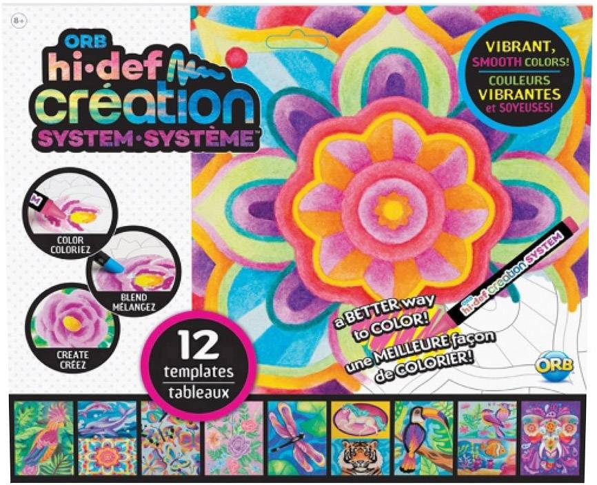 Das Hi Def-Creation SystemTM ermöglicht farbenfrohe Zeichnungen in leuchtenden, besonders kräftigen Farben, die niemals verblassen. Aus dem einzigartigen, futuristischen HD-Material können Künstler jeden Alters eine Vielzahl von Farben zu mischen, um Kunstwerke in hochauflösenden Farben jenseits der Vorstellungskraft zu erschaffen. Mit dem Hi-Def Creation SystemTM wird jeder zum Künstler!Alter: 8+Mit diesen tollen Hi-Def Creation SystemTM-Vorlagen wird Jeder zum Künstler! Wählen Sie aus 12 verschiedenen Dschungel- und Naturmotiven, um darauf mit den Hi-Def HyperstixTM detaillierte Kunstwerke in hochauflösenden, leuchtenden Farben zu erstellen. Die Bilder wurden speziell für dicke Pappkartons entwickelt und tragen zarte Linien, um die Arbeit des Künstlers zu erleichtern.