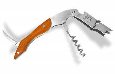 Das Kellnermesser ist gefertigt aus hochwertigem rostfreien Edelstahl und robustem afrikanischen Bubinga-Holz. Das ausbalancierte Eigengewicht vermittelt eine überzeugende Haptik und spiegelt den Wert des Korkenziehers wieder.