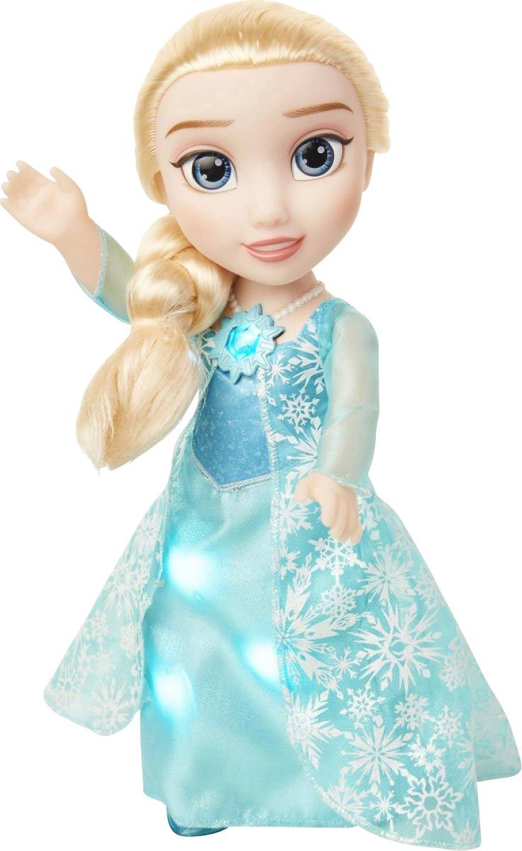 Hebe ihren Arm und sie singt Lass jetzt los und ihr Kleid leuchtet auf. Ab 3 Jahren geeignet. 3 Batterien LR03/AAA sind im Lieferumfang enthalten. Sprachen einstellbar