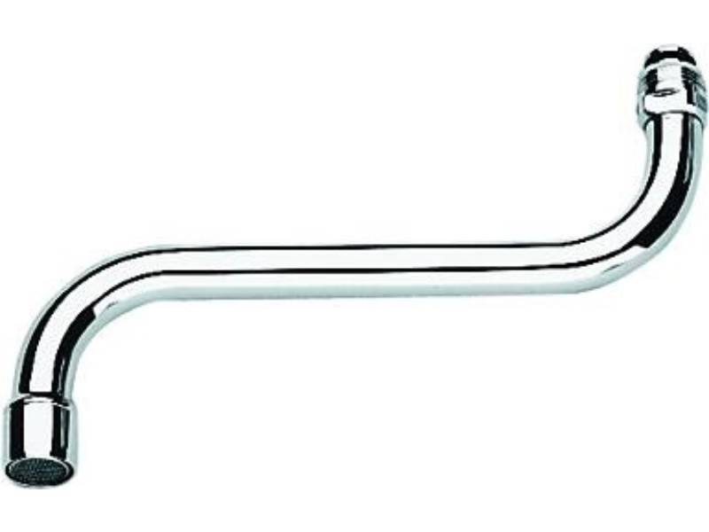 für Küchen-Wandbatterien · schwenkbar · Auslauf mit Mousseur · Verschraubung M 22 x 1 · DR-Messing · StarLight Oberfläche Weitere technische Eigenschaften: · Anschlussmaß Zufuhr M22· Aufbauhöhe gesamt 110mm· Aufbauhöhe Unterkante Hahnauslass 0mm· Ausladung 200mm· Drehbarer Auslauf Ja· Form S-Auslauf· Grundfarbe Chrom· Montageart Armatur· Mundstück Wasserhahn Schaumstrahldüse· Oberflächenbehandlung poliert· Oberflächenschutz verchromt· Werkstoff Messing