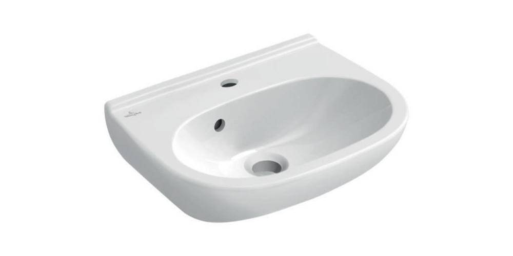 Villeroy & Boch O.novo · Handwaschbecken Compact · Sanitärkeramik · Maße: 450 x 350 mm · Oval · für 3-Loch Armatur geeignet · mittleres Hahnloch durchgestochen · mit Überlauf · EN 31 · EN 14688 · 01 Weiß Alpin Achtung: Bei Modellen ohne Überlauffunktion muß ein nicht verschließbares Ablaufventil verwendet werden!